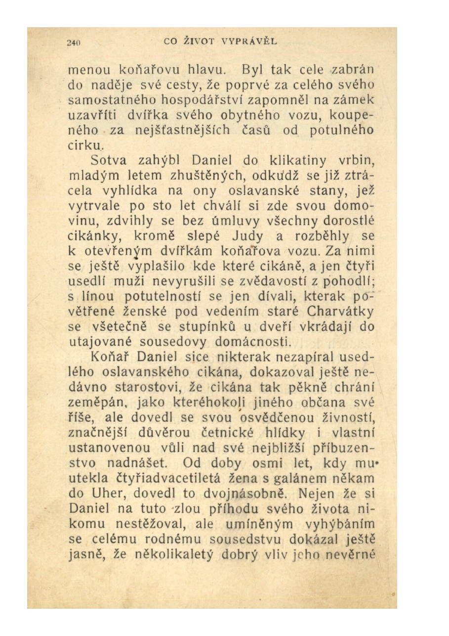 4. V jakém jazyce zpíval tatínek Daniel své dcerce? (romsky) POZN: Preissová zaznamenala text na s. 243 s pozoruhodnou lingvistickou přesností, odpovídá tomu i překlad tam uvedený, který je z jazykového hlediska přesný.